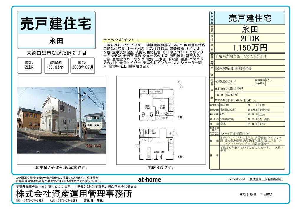 大網白里市ながた野2丁目 中古住宅 2LDK 1150万円
